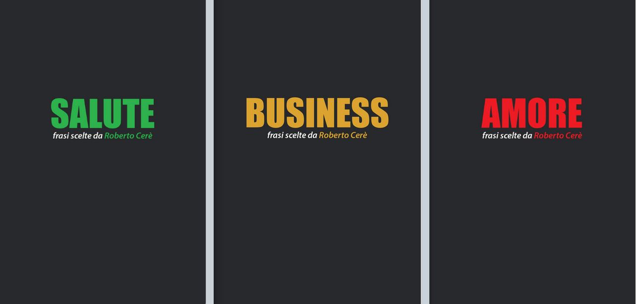 “Nella vita di tutti i giorni, come nel business, il problema più grande non è la mancanza di opportunità o di possibilità: il problema più grande, molto spesso, è la mancanza di esempi positivi che ci stimolino a dare di più, a diventare la versione migliore di noi stessi” dichiara Roberto Cerè, che aggiunge: “In questi tre libri che raccolgono gli aforismi, i pensieri e le frasi più incisive, anche sarcastiche e ironiche, dei più grandi pensatori di tutti i tempi, ho voluto presentare ai lettori un portafoglio di strumenti necessari per affinare la propria mentalità vincente, ovvero la convinzione di potercela fare che distingue chi vince da chi perde. Molto spesso questa convinzione viene demolita dalle persone che ci circondano ed ecco che il successo di ognuno di noi è influenzato dalle persone che frequenta. Con Business, Salute e amore voglio donare ai lettori la possibilità di un nuovo riscatto“.