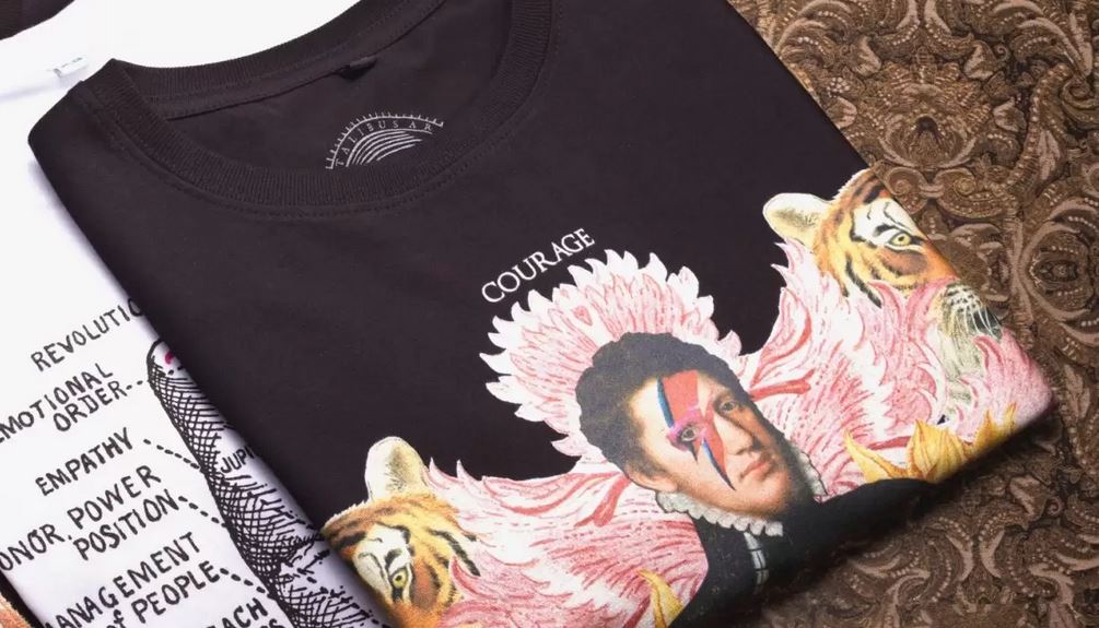 Come brand fashion Coreterno oltre alle t-shirt offre sciarpe opulente in chachemere e sciarpe modali con delle divertenti frasi ereditate principalmente dall’estetica punk (revolution, Free yourself, Love Conquers) quasi di richiamo all’ironia pungente di alcuni writer di street art su sfondi storici.