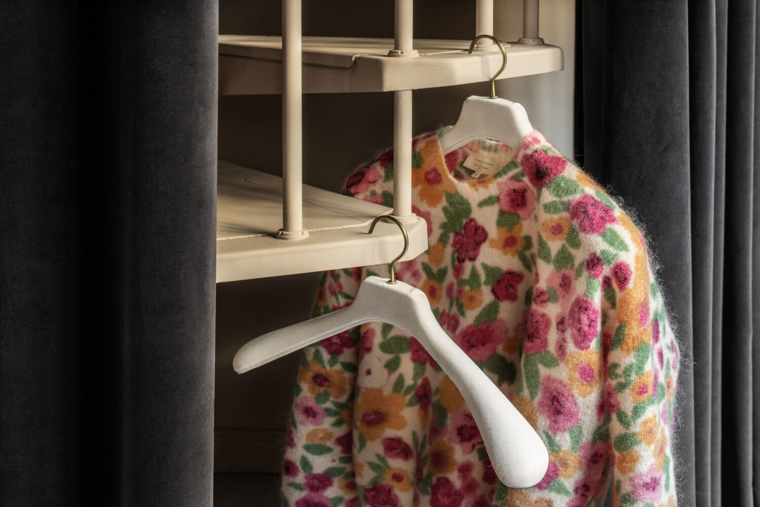 I toni caldi e accoglienti dei portabiti rivestiti in velluto si armonizzano perfettamente con la bellezza naturale del legno di rovere e di faggio trattati a cera, creando un’atmosfera elegante e armoniosa negli spazi domestici.