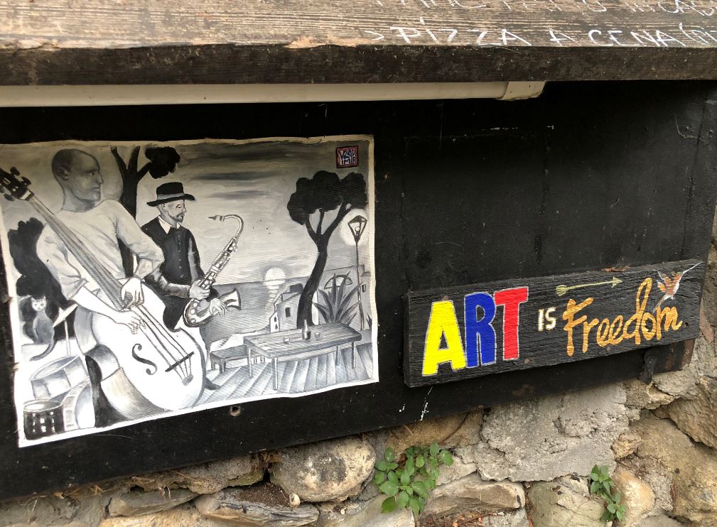 Qui gli artisti di una certa ispirazione hippie si sono radunati col tempo, dopo il disastroso terremoto del 1887 e hanno deciso di ripopolare il paese in parte ancora in piedi. E lo hanno fatto con quello che sapevano fare meglio: l’arte.