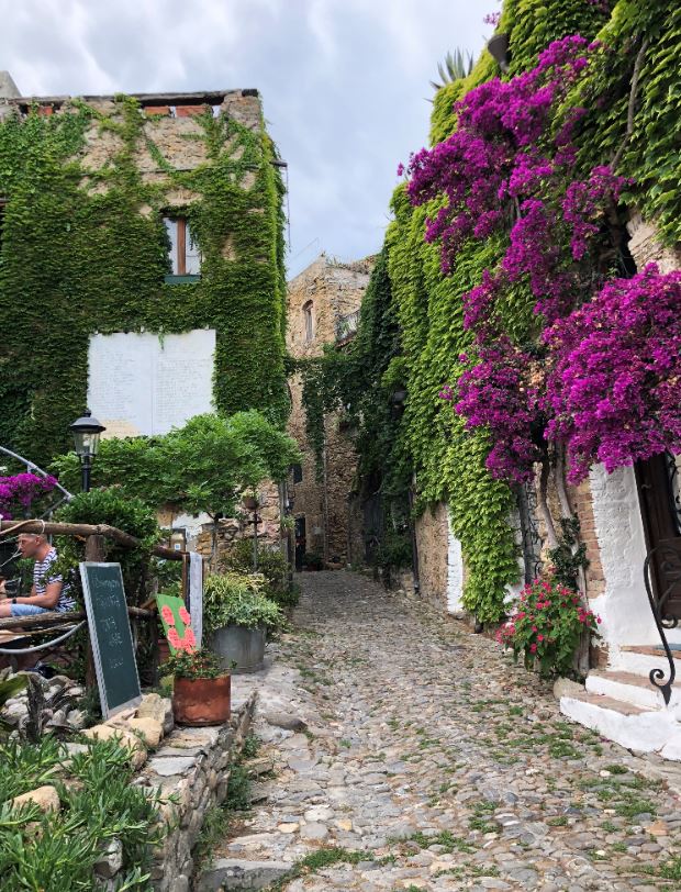 Per arrivare a Bussana, riviera ponenete ligure sopra Sanrem, la srada dalla costa a un certo punto si inerpica sulle montagne. E non sembra che ci sia spazio e tempo per un avamposto di civiltà. E invece, ci si arriva tramite un tracciato chiuso al traffico che nella parte vecchia dell’abitato svela un ambiente fermo nel tempo.