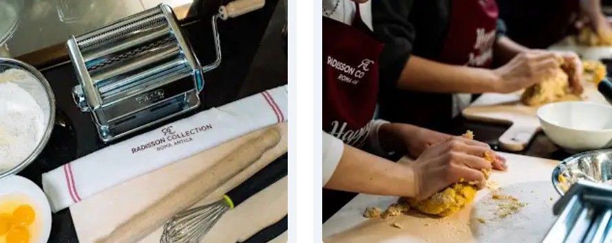 - Per chi sogna di mettersi alla prova tra i fornelli, la Cooking Class offre un viaggio nei sapori autentici della cucina italiana e romana. L’attività, organizzata in base alla disponibilità dello staff e del ristorante offre agli ospiti un’esperienza culinaria coinvolgente e autentica. Dopo aver impastato e creato il proprio piatto, gli ospiti assaggeranno le proprie ricette e porteranno a casa un ricordo memorabile della Città Eterna.