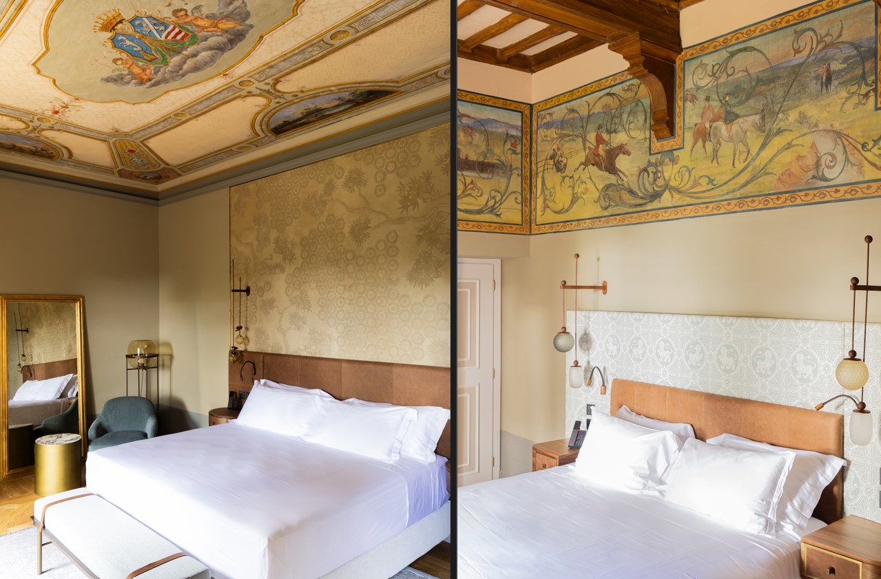 La Villa e la Colonica sono i luoghi in cui si trovano la lobby, le camere e suite. La lobby, totalmente rivista negli spazi in chiave contemporanea, è caratterizzata da arredi che richiamano i colori della terra e accoglie gli ospiti in un’elegante biblioteca o li intrattiene nella sala biliardo. Nella Villa che apre le prime 21 camere e suite – su un totale di 40 – durante questa stagione, il piano nobiliare torna all’antico splendore con “La Suite del Conte” e “La Suite della Contessa”, entrambe emblema della storia locale grazie al recupero di elementi architettonici originali come i grandi camini, gli inserimenti pittorici del XIX Secolo e affascinanti soffitti travati. Con affaccio diretto sul giardino, una metratura modulabile fino a 180 mq, queste due signature suite consentono l’uso in esclusiva dell’intero piano nobile, garantendo massima privacy e ogni confort di soggiorno.