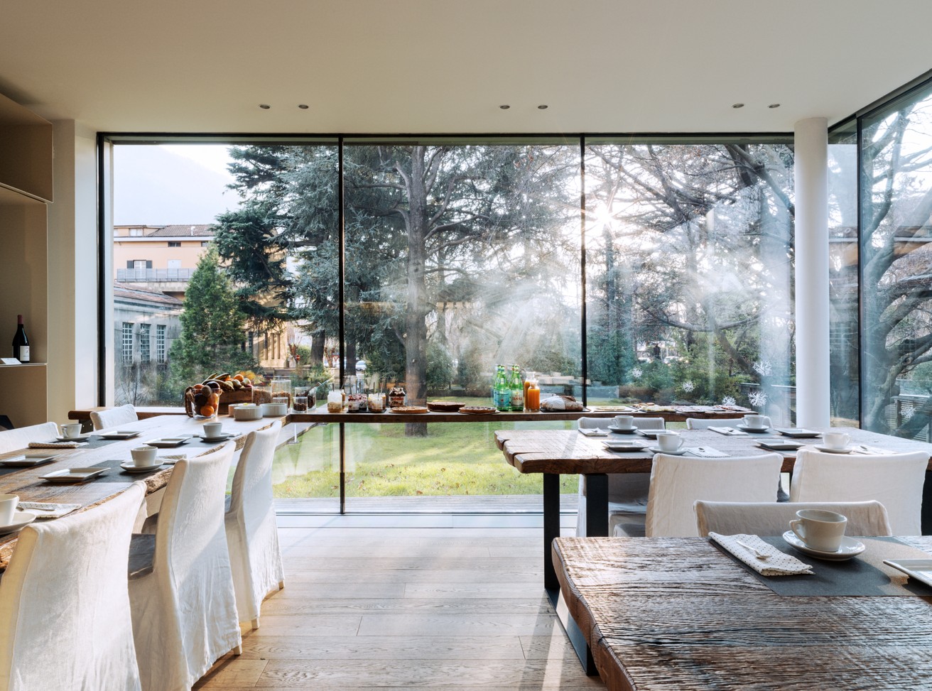 Alla proprietà si accede dal lungo lago, attraverso l’ingresso del ‘fratello’ hotel Promessi Sposi (di cui vi abbiamo parlato qui) e tramite un suggestivo collegamento in mezzo al verde della collina che delimita la sponda est del lago di Como. Altrimenti, in macchina, è facilmente raggiungibile dall’alto, dove c’è parcheggio e comodo passaggio al piano.