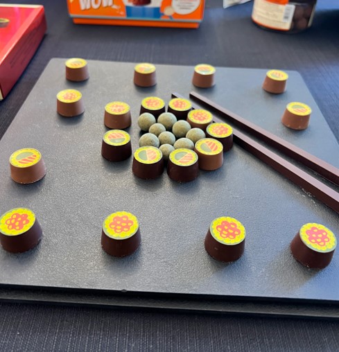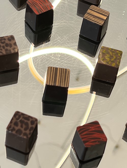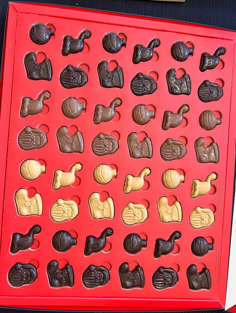 • dolcetti di Natale: pasticcini di pasta di nocciole ricoperti di cioccolato al latte e codette di cioccolato fondente