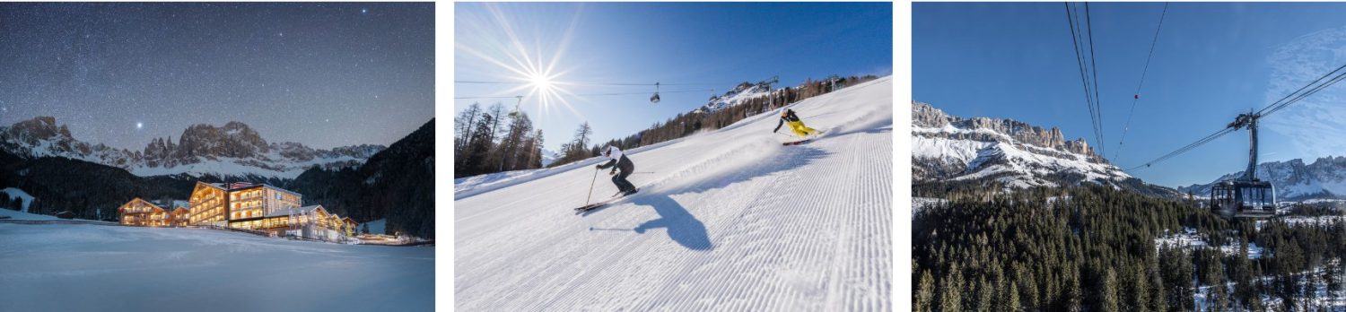 Il Cyprianerhof Dolomit Resort riapre le porte ai suoi ospiti il 13 dicembre 2024 per un inverno all’insegna dello sci nel vicino comprensorio di Carezza Dolomites, raggiungibile in pochi minuti grazie all’innovativa funivia cabrio di Tires. Dopo una giornata di attività sulla neve nelle Dolomiti, l’accogliente lusso naturale dell’hotel 5* Cyprianerhof avvolge gli ospiti in una dimensione di relax e tranquillità, lontana dalle mete turistiche di massa.