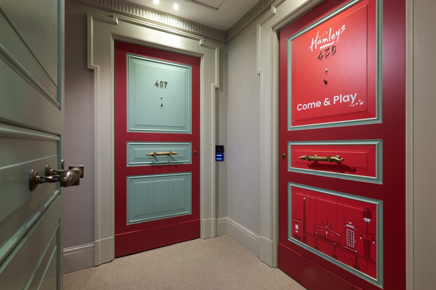 I bambini saranno entusiasti di entrare nella “Fairytale Suite di Hamleys” attraverso il “portale magico”, trovandosi accolti da trenta orsacchiotti disposti in varie posizioni all’interno della suite. I colori vibranti del rosso e del bianco, marchio distintivo di Hamleys, creano un’atmosfera di gioia e divertimento, mentre i giocattoli e gli orsacchiotti Hamleys sparsi per la suite invitano i piccoli ospiti a immergersi in un mondo di fantasia e avventura.