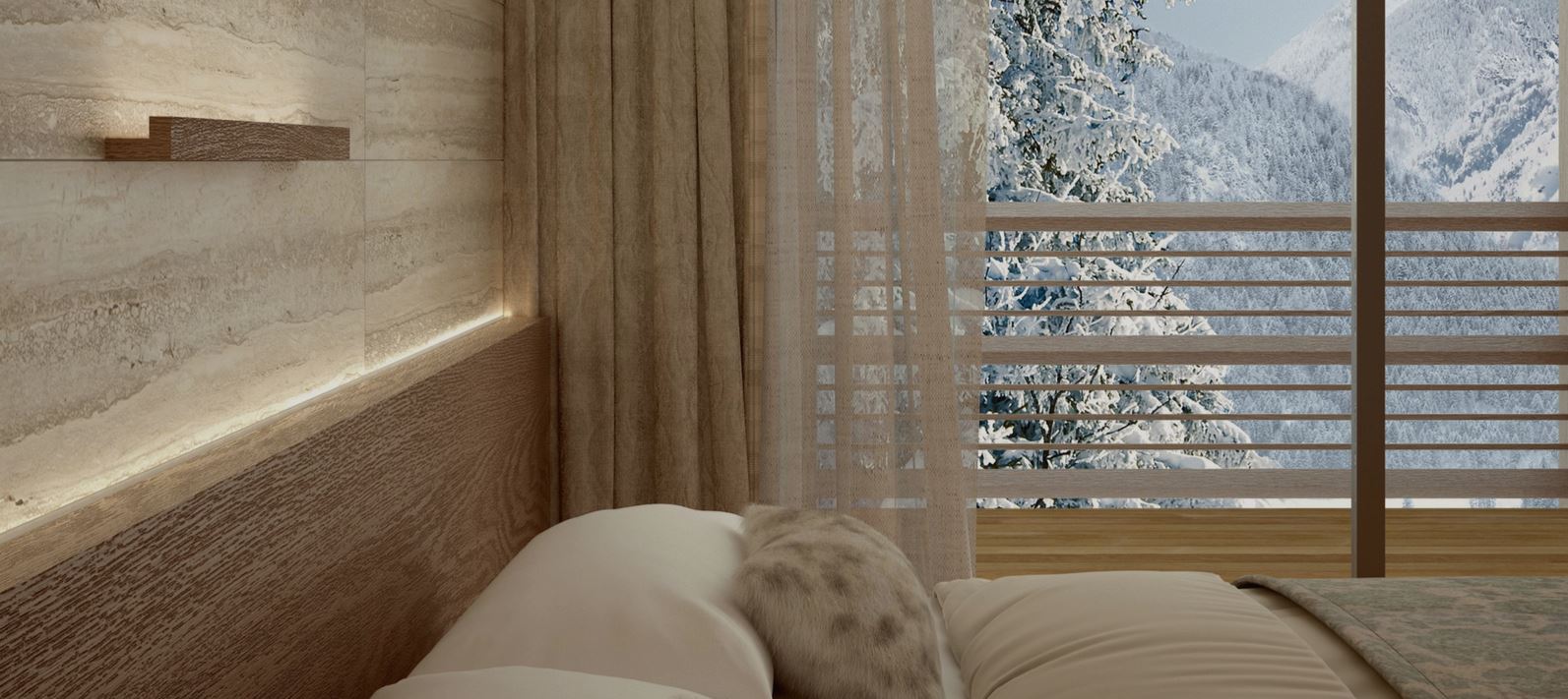 RESIDENZE – Pietra, legno e ampie vetrate che cercano il contatto con la natura sono i temi ricorrenti delle Residenze. Lefay Wellness Residences è il connubio tra la rivisitazione del concetto di lusso e la suggestione del paesaggio delle Dolomiti. Ogni singolo dettaglio, dai primi passi per raggiungere l’ingresso alle aree più interne, è studiato per offrire ai proprietari un’esperienza abitativa emozionante e confortevole. La luce che filtra dalle terrazze illumina le finiture artigianali, pensate per evocare un senso di individualità associato alle tendenze dell’estetica moderna. Le venature del legno, la consistenza mineraria della pietra e le sensazioni materiche dei tessuti naturali arredano una casa in perfetta armonia con l’ambiente.