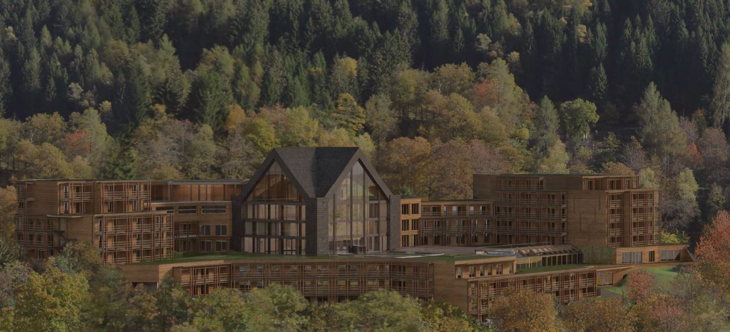 LOCATION – Il complesso sorge nella skiarea di Madonna di Campiglio, a Pinzolo, il maggior centro della Val Rendena, che comprende parte della Val di Genova, conosciuta come “Valle delle Cascate”.
