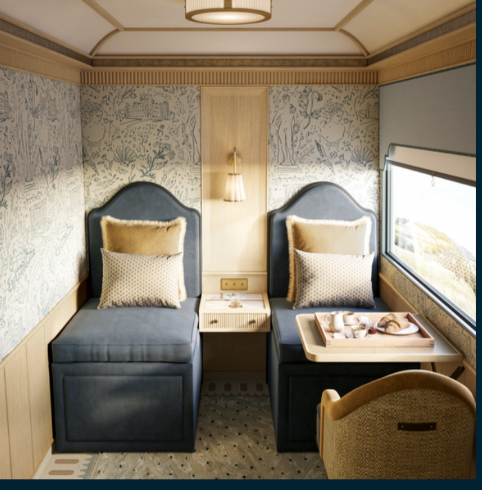 Impostando un nuovo standard nel design di lusso, il rinomato studio londinese Albion Nord, ha creato interni dall’eleganza rasserenante e dall’inconfondibile fascino inglese che rendono unico questo treno. La palette cromatica, ispirata ai paesaggi naturali mozzafiato che si aprono al passaggio del treno e regalano scorci da cartolina, i motivi tradizionali e i dettagli vivaci danno vita a un’atmosfera al contempo tranquilla e vivace.