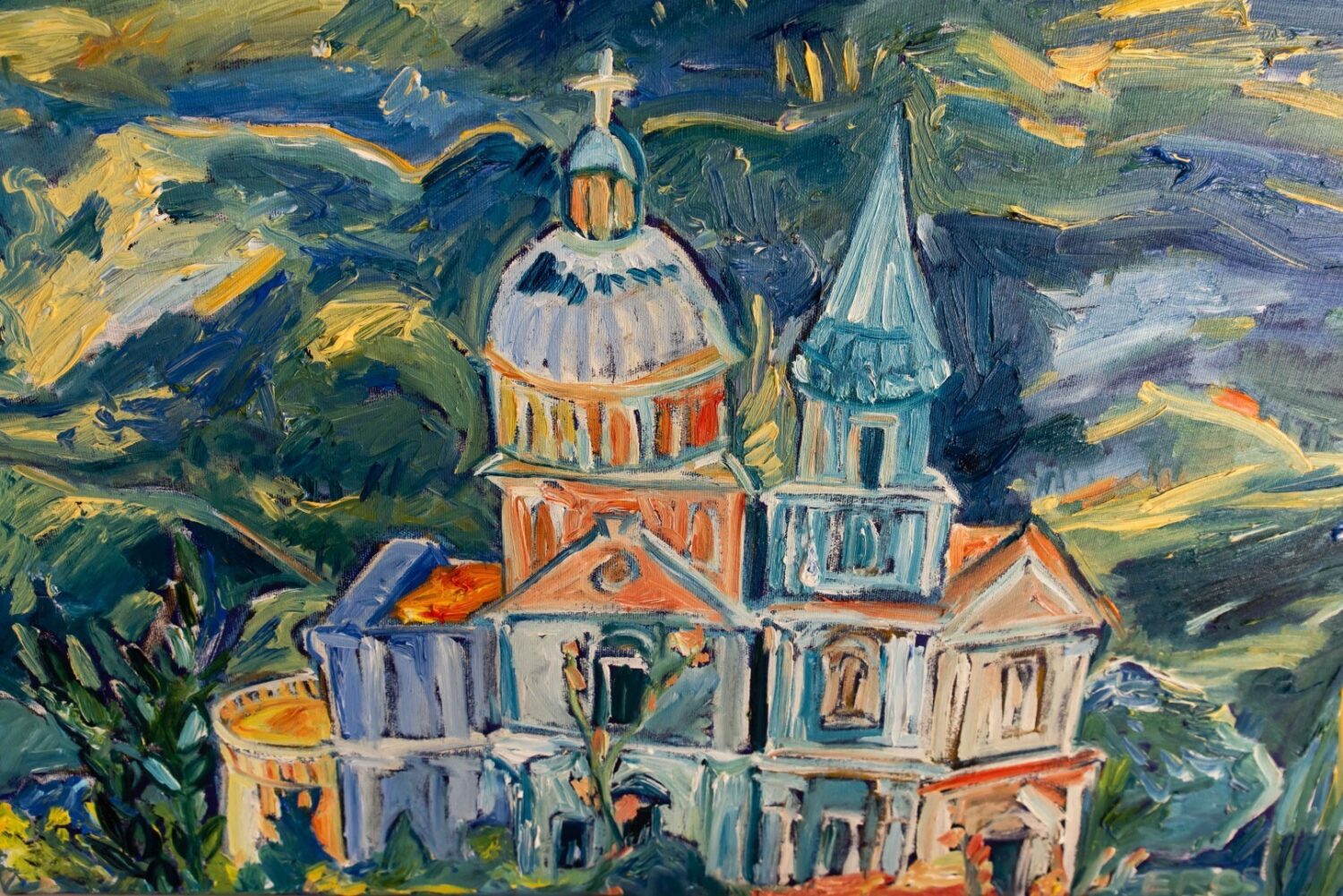 La mostra vuole creare un simbolico, ma forte, collegamento fra la Toscana e il Veneto, terra d’origine di Susanna e Isidoro Rebatto, che anni fa si sono innamorati di Montepulciano e hanno acquistato vigne e terreni di quello che ora è Podere Casanova. Ad interpretare in chiave artistica questo legame sono le vitali e coloratissime tele di Eros Rizzo, che con lo stile che lo contraddistingue coglie l’anima di un territorio così ricco di storia e bellezza quale è quello di Montepulciano.