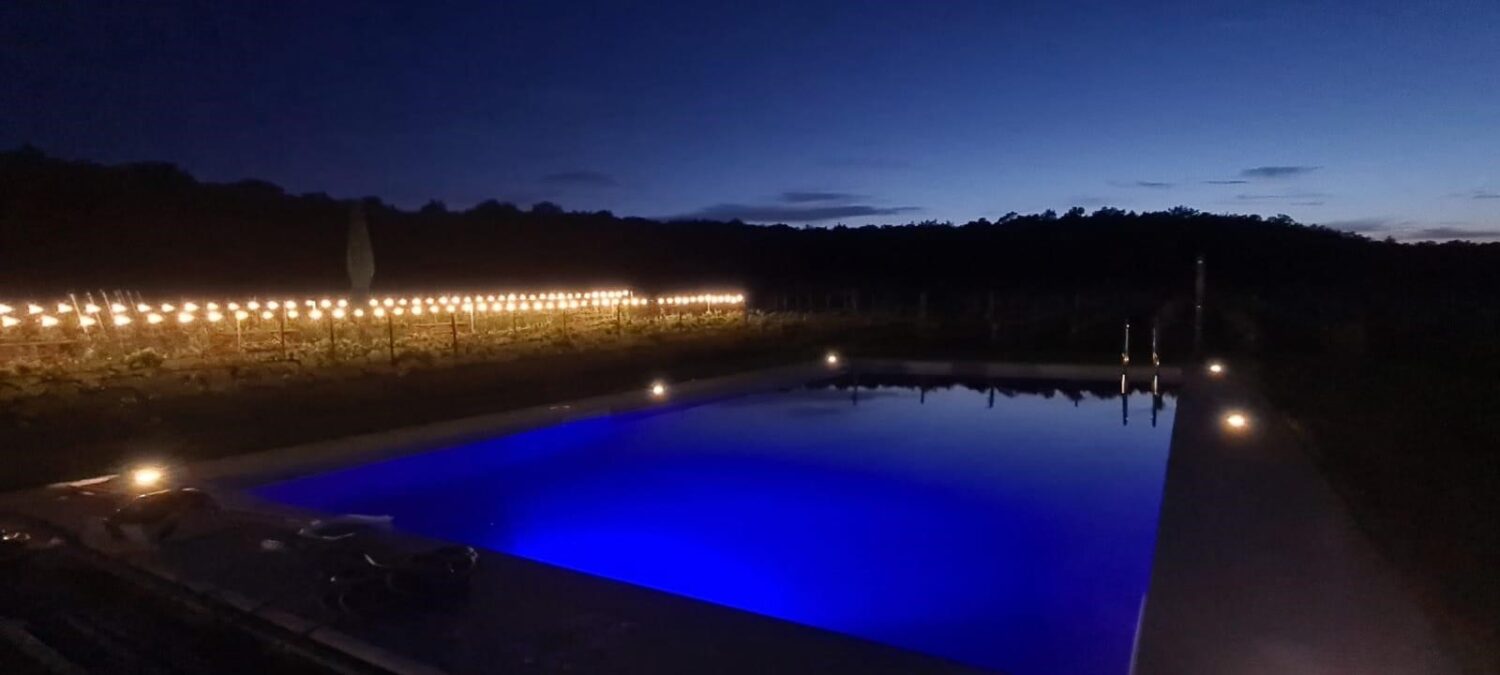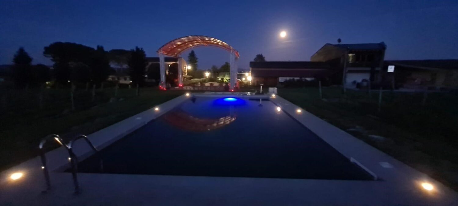 La Toscana è un mito e Montepulciano, con il suo stupendo centro storico e i vini rinomati, ne interpreta l’essenza stessa. A una decina di minuti dal centro storico, ma nella tranquillità della natura, Podere Casanova – con la sua rinomata cantina e il bell’agriturismo – è un accogliente microcosmo in aperta campagna dove trascorrere qualche ora fra degustazioni guidate e varie attività all’aria aperta, oppure sostare per qualche giorno per un rilassante break nella tranquillità della natura, lontano dalla folla. Appena realizzata anche la piscina (foto sotto) che è un toccasana per le calde giornate estive per gli ospiti e che offre un panorama suggestivo con l’illuminazione notturna.
