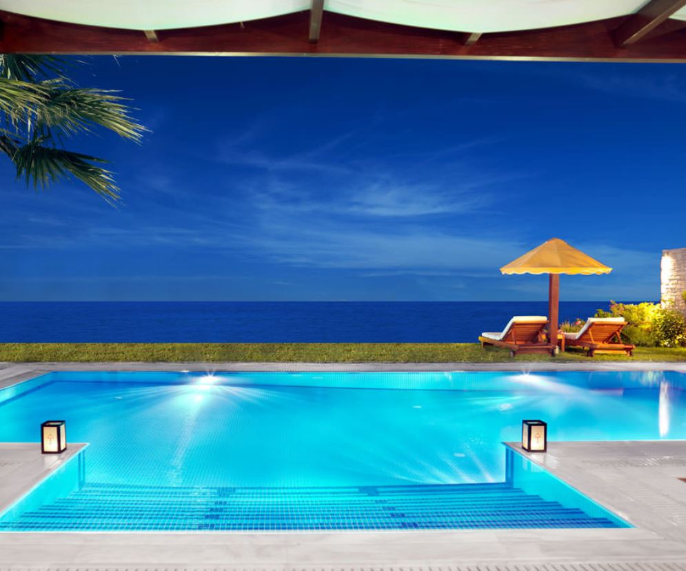 DESIGN – Le lussuose case vacanza di Porto Zante sono decorate e ammobiliate con complementi di Armani Casa e Gervasoni, quadri di famosi artisti greci e sono dotate di comfort esclusivi quali un impianto audio della Bang & Olufsen, un set da tavola di Christofle Paris, porcellane di design di Bernardaud e altri oggetti firmati BVLGARI.