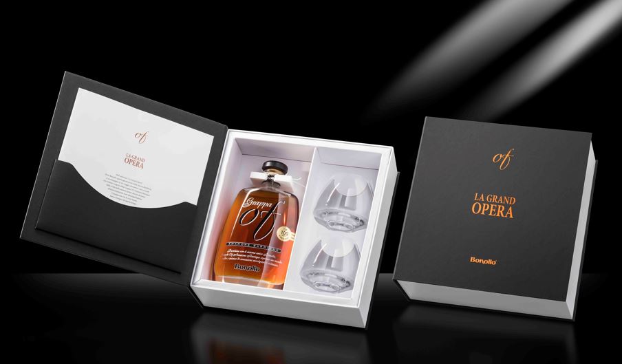 OF BONOLLO – La proposta dedicata alla regalistica di alto livello firmata OF Bonollo è un vero viaggio nella distillazione: l’originale taccuino racconta il processo di produzione della Grappa attraverso le parole di Elvio Bonollo (IV generazione di famiglia) ed i suoi ricordi personali; la Grappa OF Amarone Barrique, gioiello delle Distillerie Bonollo Umberto, è racchiusa in una confezione regalo di pregio e stupirà tutti gli estimatori; infine, il nuovo bicchiere, La Boule, elegante e raffinato, sarà capace di esaltare al meglio i sentori del distillato.