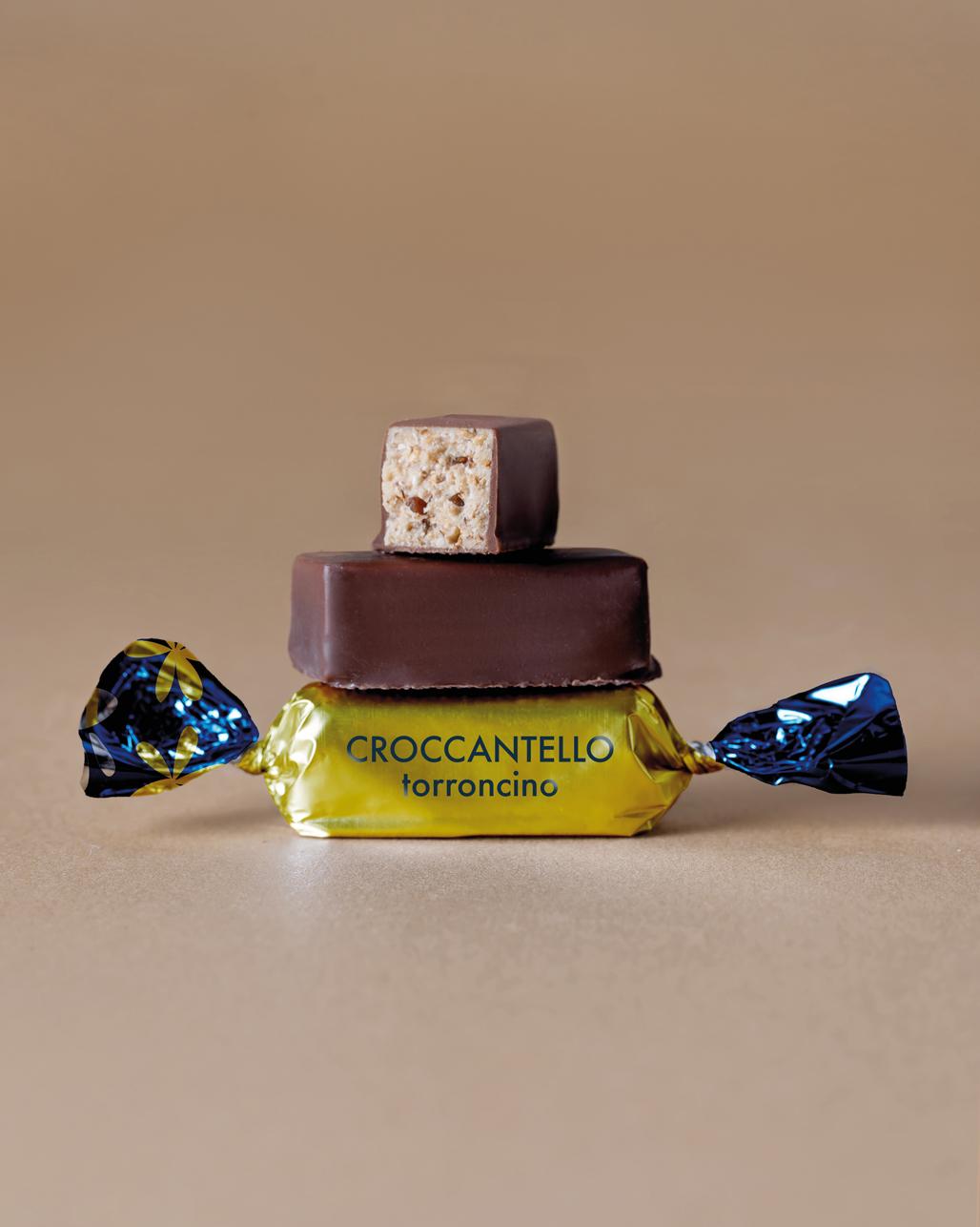versione dura, il gianduia, il bianco e il cioccolato al caramello si abbinano a fior di sale, pistacchio,
