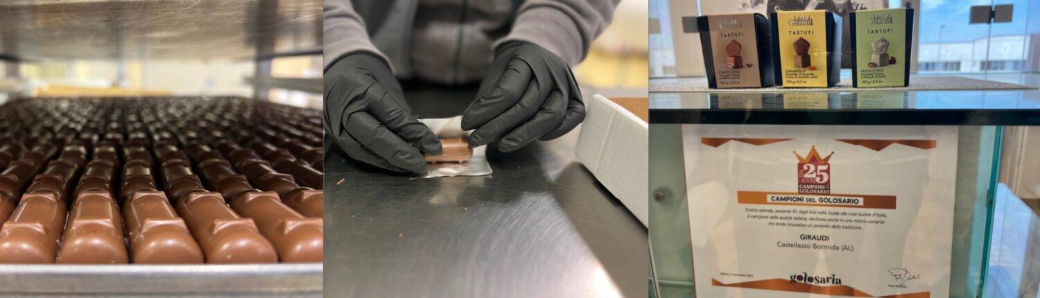 Il cioccolato all’infinito, recita il claim della fabbrica di cioccolato Giraudi. E mai definizione fu più appropriata: in provincia di Alessandria la realtà artigianale situata a Castellazzo Bormida, utilizza molte delle materie del territorio, come le nocciole IGP piemontesi, e tanta inventiva, quella di Giacomo Boidi, artigiano che ha contribuito a rendere grande il marchio fin dal 1982, quando era ancora un piccolo laboratorio. Oggi l’azienda, che porta la firma di Giacomo e di suo figlio Davide, rivende senza soluzione di continuità i prodotti che vengono realizzati in loco, distribuendo un ampio catalogo di cioccolati classici e identitari in tutta Italia, Austria, Germania, Grecia, Norvegia, Stati Uniti, Cina, Giappone e Australia.