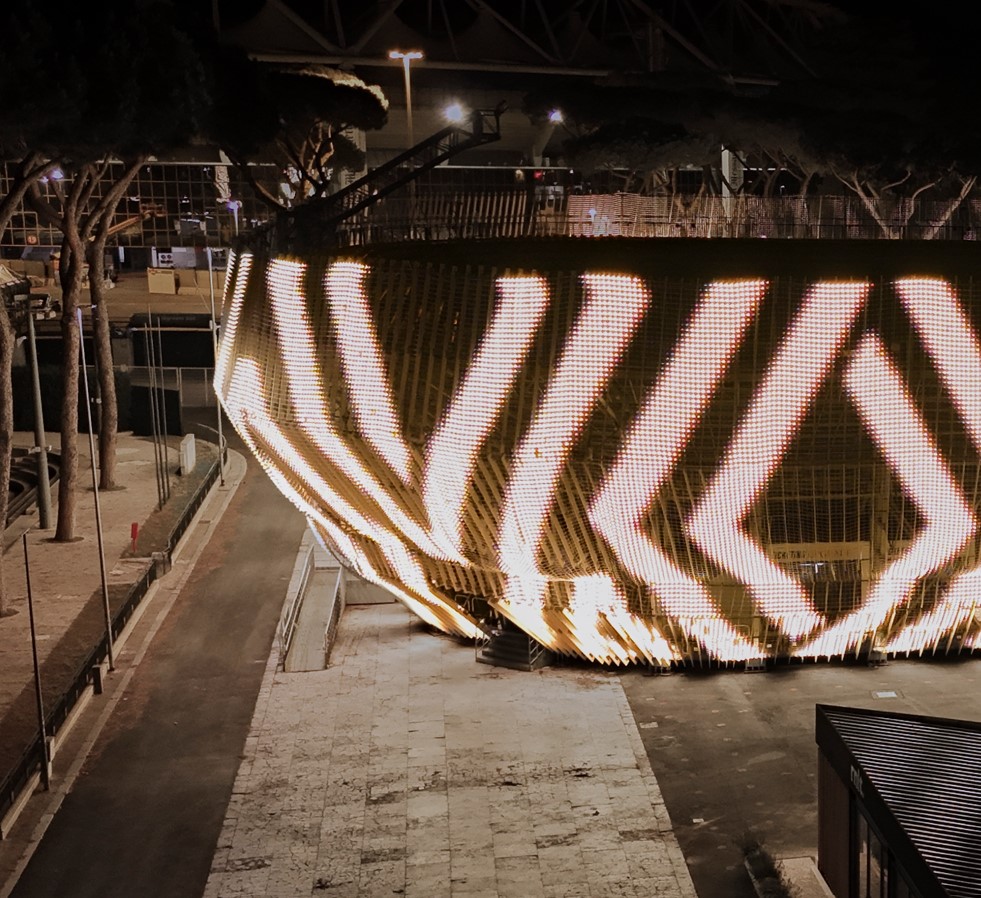 Alla Grand Stand Arena di Roma, chiamata ormai R5 Arena, è possibile assaporare un’atmosfera che ricorda quella della futuristica Sphere di Las Vegas: una meshled composta da 3000 metri di fili sottili in acciaio, che ingloba oltre 2 milioni e 500 mila punti luminosi controllati singolarmente da circa 300 sistemi posti alla base della struttura, che saranno così animati da una serie di contenuti visivi tridimensionali. Il progetto è stato ideato e realizzato da ARTLED, start-up italiana specializzata nello sviluppo di progetti innovativi nell’ambito delle arti visive con un approccio disruptive che combina creatività e tecnologia, con all’attivo la realizzazione di servizi per eventi di alto profilo, per Renault e in collaborazione con l’agenzia LePub del gruppo Publicis: un progetto in grado di tematizzare visivamente la Grand Stand Arena per le attività speciali legate all’area del Foro Italico che possa diventare “invisibile” quando necessario. E così, proprio grazie alla meshled che ricopre tutto il perimetro esterno della struttura, l’arena prenderà vita con una serie di evoluzioni grafiche tridimensionali e in movimento che includono il logo Renault e danno vita a un grande 5, proprio come quello della nuova ed iconica Renault 5 E-tech Electric, che sarà presto lanciata sul mercato italiano. “Abbiamo chiamato i sistemi che controllano i punti luminosi “branch”, ramo in italiano, perché assomigliano proprio a rami dai quali partono i collegamenti e le informazioni digitali – racconta Sossio Pezzella, CEO & founder di Artled, parlando del progetto, definito “titanico” dalla stessa Renault per la rapidità con cui è stato ideato e realizzato – Per garantire che queste informazioni siano inviate correttamente a tutta la rete, abbiamo ideato una struttura in fibra ottica simile a quella delle sinapsi umane, ma molto più veloce. Proprio come la trasmissione sinaptica, che deve essere precisa e sincronizzata per garantire una corretta comunicazione tra i neuroni e permettere al cervello di funzionare in modo efficiente, la trasmissione del segnale deve essere accurata e sincronizzata per garantire la corretta visione”. Diversamente dalle tematizzazioni basate solo sull’illuminazione “Artled è specializzata in applicazioni visive tailor made. Questo ci permette non solo di illuminare, ma anche di creare tematiche visive con tecnologie uniche che trovano sbocco anche su superfici atipiche, proprio come abbiamo fatto per la Grand Stand Arena, dando vita a nuovi linguaggi di comunicazione che potranno rappresentare il futuro dell’adv, trasformandola in una forma di “artistic-adv”, in grado di comunicare attraverso un linguaggio più artistico, non invasivo” – conclude Sossio Pezzella. |