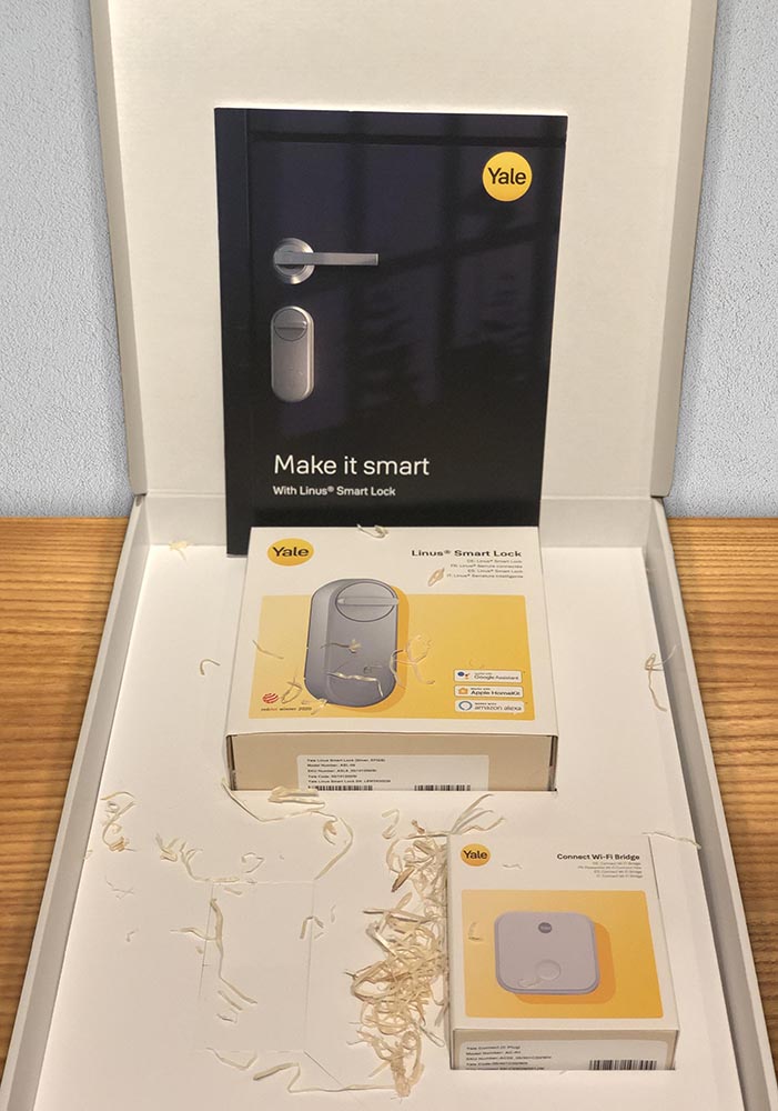 Il kit viene recapitato in una confezione che nulla ha da invidiare ai migliori smartphone. All’interno, confezionati singolarmente, abbiamo trovato tutto quello che necessita per l’installazione dello smart lock sulla nostra porta d’ingresso.