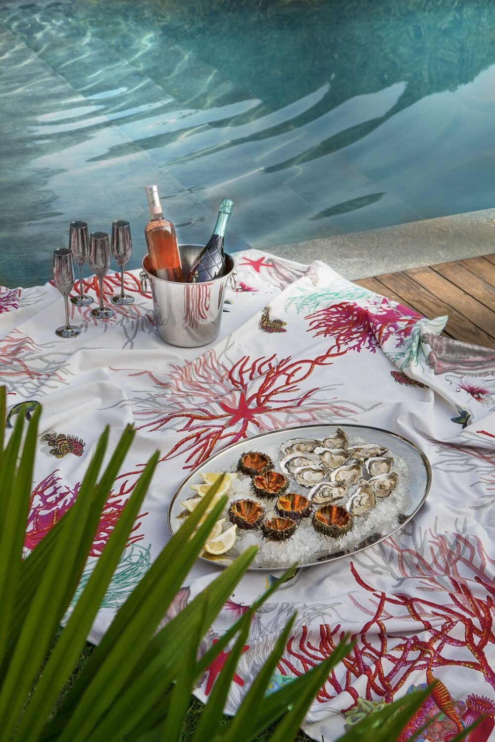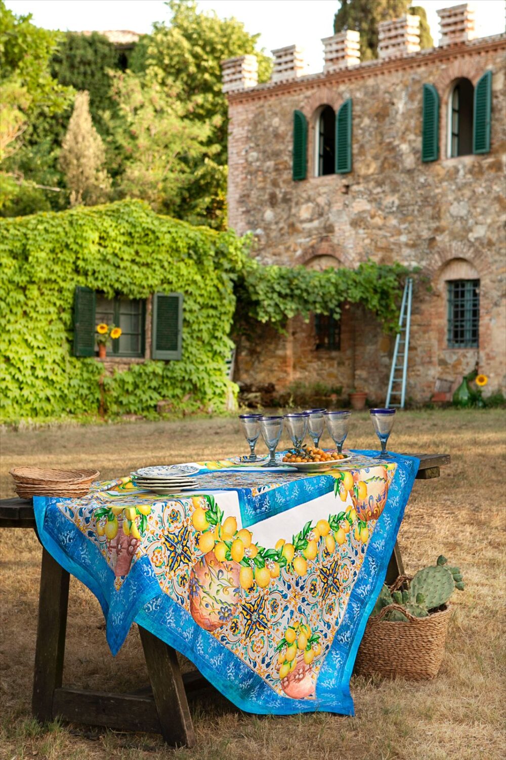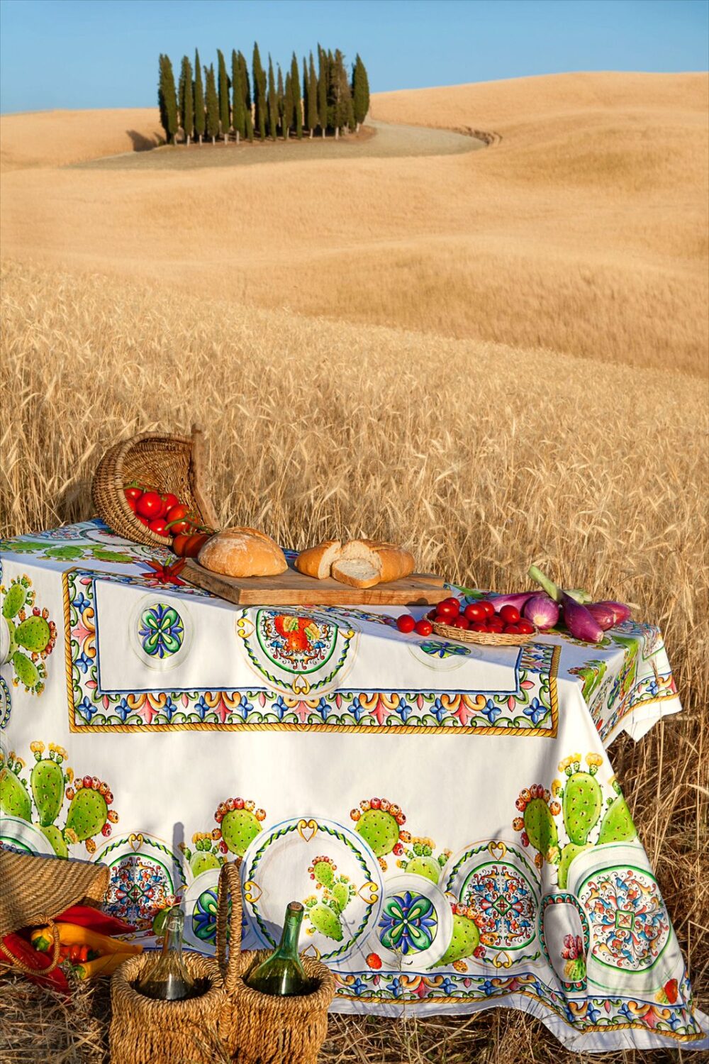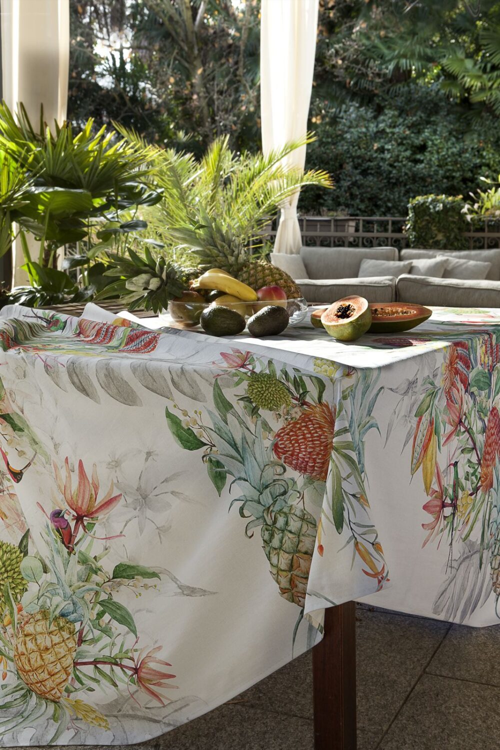 I disegni estivi vestono la tavola conferendole un gusto sofisticato ma informale: un campo di girasoli nella campagna senese, l’incanto delle ceramiche di Sicilia, i colori e profumi della costiera Amalfitana, fino al sogno di mete lontane attraverso fascino dei coralli e della frutta tropicale.