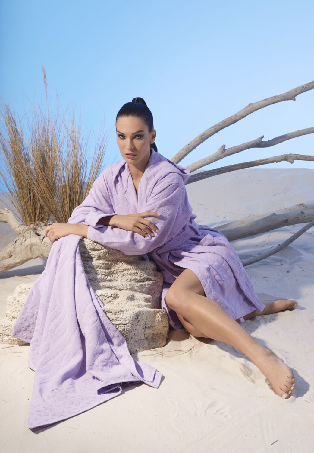 Gli accappatoi Eden Island e Fushifaro, in particolare, grazie al modello corto e al taglio sartoriale, rappresentano un vero e proprio capo d’abbigliamento da indossare in ogni situazione per rendere l’estate assolutamente chic e sono coordinabili al telo leggerissimo e super assorbente con lavorazione jacquard in tre morbide tinte pastello.