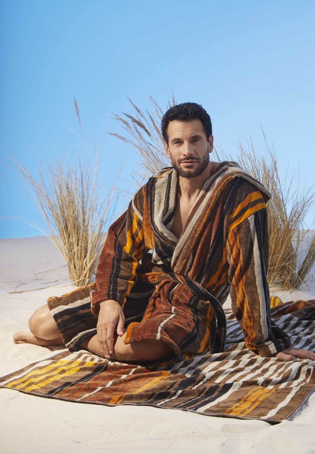 I teli mare e gli accappatoi sono realizzati in morbida spugna di cotone, particolarmente idrofila, o in soffice velour, per un comfort da vivere en plen air.
