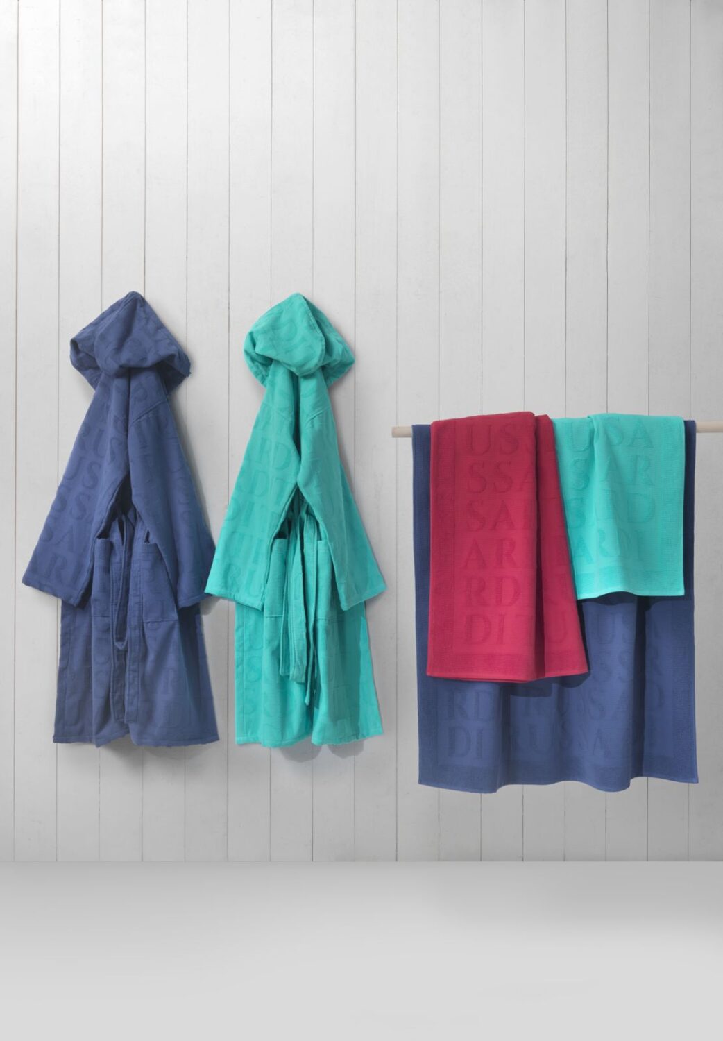 I teli mare e gli accappatoi sono realizzati in morbida spugna di cotone, particolarmente idrofila, o in soffice velour, per un comfort da vivere en plen air.