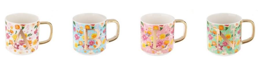 Da Kasanova si trovano queste tazze colorate con decoro floreale, lettera e manico oro. Ideale per gustare tè, tisane, caffè o cioccolata in una mug con l’iniziale del tuo nome. Diametro 8,8 cm. Si tratta di un’originale tazza in ceramica Bone China con decoro floreale per accompagnare la tua colazione o merenda quotidiane con vivacità. L’iniziale dorata la renderà un accessorio personale e si può creare il colorato set abbinandola agli altri elementi della linea e scegliendo le lettere di tutti i membri della famiglia. Ognuno avrà la propria tazza, ideale per gustare un tè o una tisana calda ogni volta, ma anche una golosa cioccolata a merenda o un buon caffelatte a colazione. Il manico dorato permette di afferrarla saldamente anche in presenza di bevande molto calde. Lavabile in lavastoviglie.