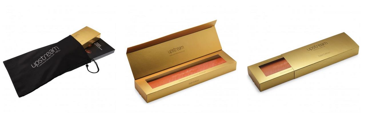 Anche i packaging Upstream sono esclusivi e raffinati, mentre il confezionamento del salmone in parti nettamente suddivise, offre al consumatore finale la possibilità di esplorare per intero la gamma di sapori delle sue carni: un itinerario tra gusti più decisi o delicati. Le confezioni regalo si distinguono per l’elegante packaging, la varietà dei tagli di salmone, l’accurato design degli accessori.