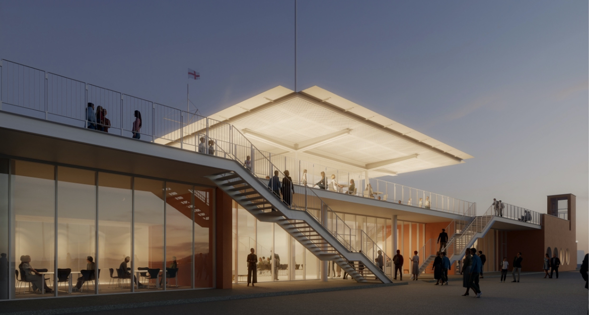 Il nuovo edificio sarà realizzato con una struttura puntuale di pilastri e una soletta in cemento armato parzialmente appoggiata alla diga, garantendo la massima flessibilità e aggregabilità degli spazi interni. Un sistema di scale esterne e un ascensore panoramico garantiranno l’accessibilità e la fruibilità pubblica.