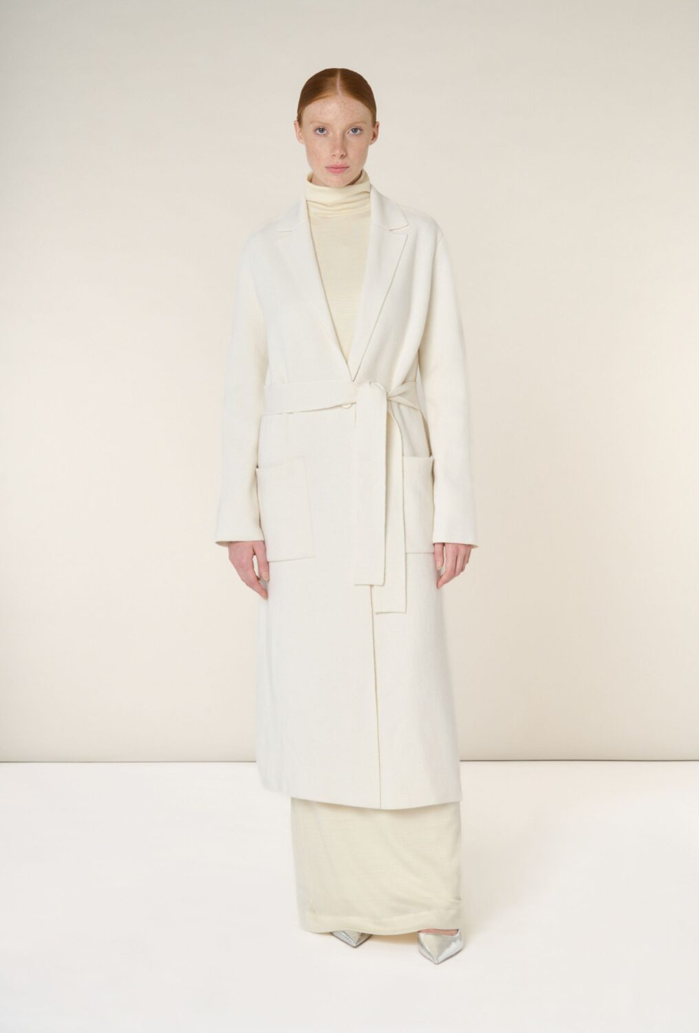 Il cappotto double in lana e cashmere bianco e rosso, realizzato con la tecnica double crea un capo avvolgente e sfoderato, rifinito anche all’interno. Le tasche lo rendono pratico e il metodo di produzione calato gli dona una perfetta vestibilità.