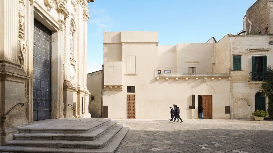 La sede espositiva della Fondazione Biscozzi | Rimbaud si trova in un edificio storico del centro di Lecce, a poche decine di metri da Porta Napoli, nella piazza su cui si affaccia la settecentesca chiesa di Santa Maria della Provvidenza, meglio nota come chiesa delle Alcantarine.